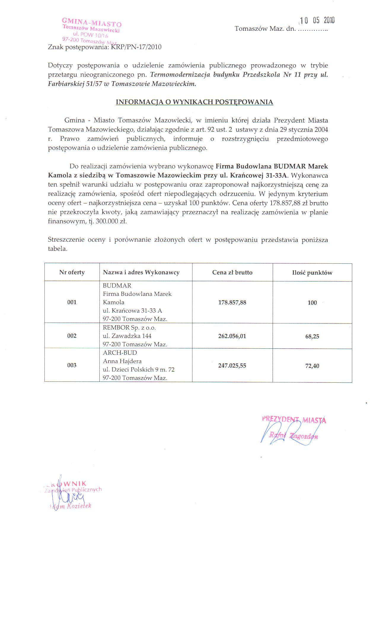 INFORMACJA O WYBORZE OFERTY - KRP PN-50-2010.doc