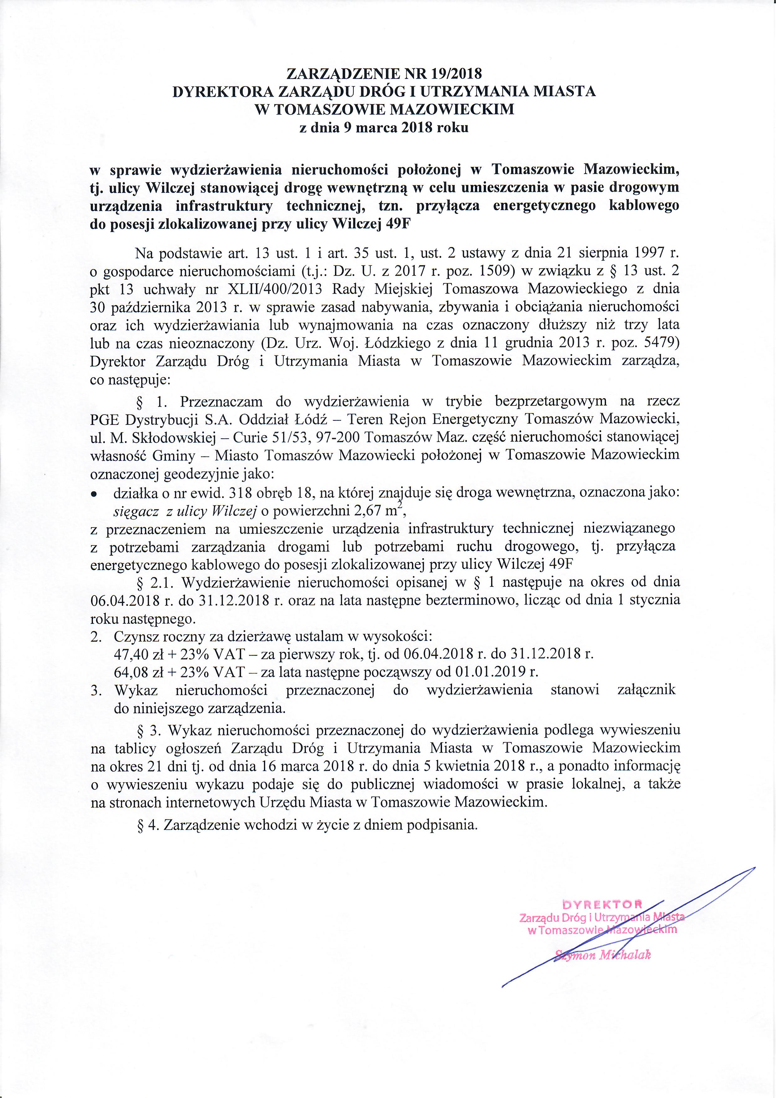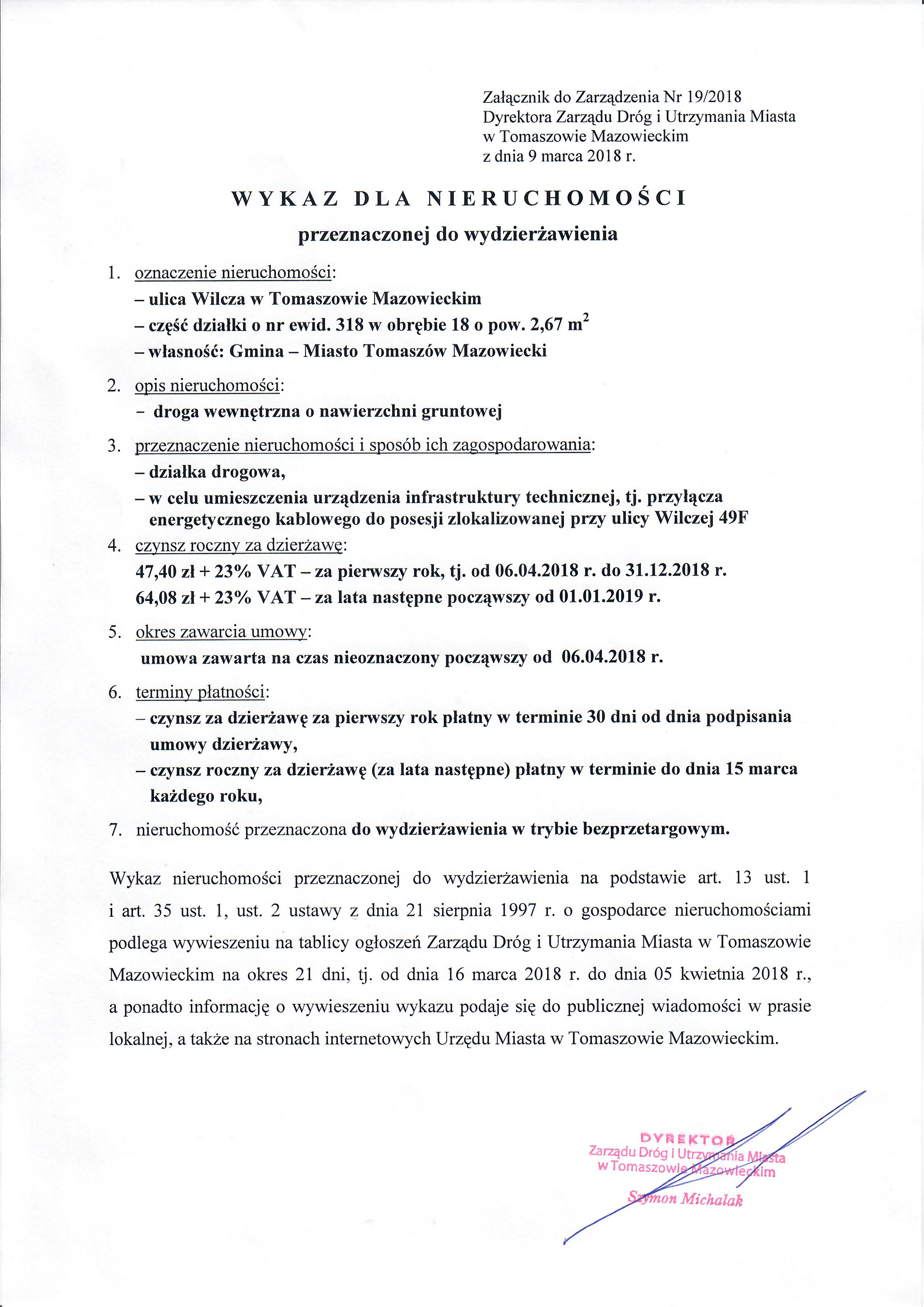 Wykaz dla nieruchomości przeznaczonej do wydzierżawienia w trybie bezprzetargowym - ul. Wilcza